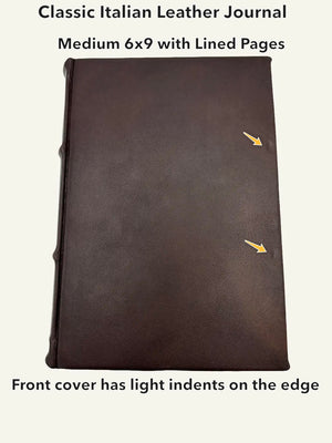 Our most popular hardcover notebook journal since 2001 is always ready to free your imagination! This handmade ruled leather journal with lined pages captures the original essence of Italy, the elegance of the classical world, and the timelessness of traditional bookmaking. Imperfection found on the leather cover of the Medium 6x9 size - see detailed photos and SAVE - 30% Off!