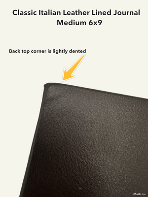 Our most popular hardcover notebook journal since 2001 is always ready to free your imagination! This handmade ruled leather journal with lined pages captures the original essence of Italy, the elegance of the classical world, and the timelessness of traditional bookmaking. Imperfection found on the leather cover of the Medium 6x9 size - see detailed photos and SAVE - 25% Off!