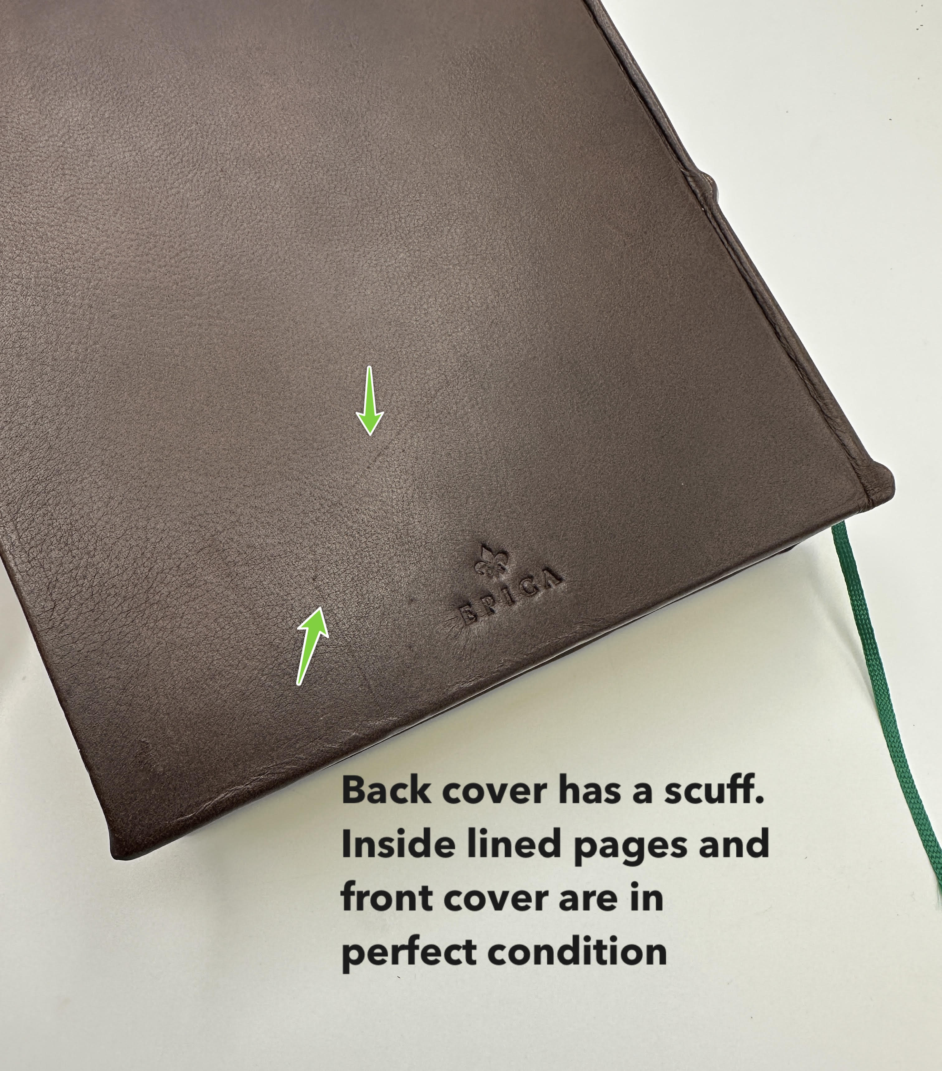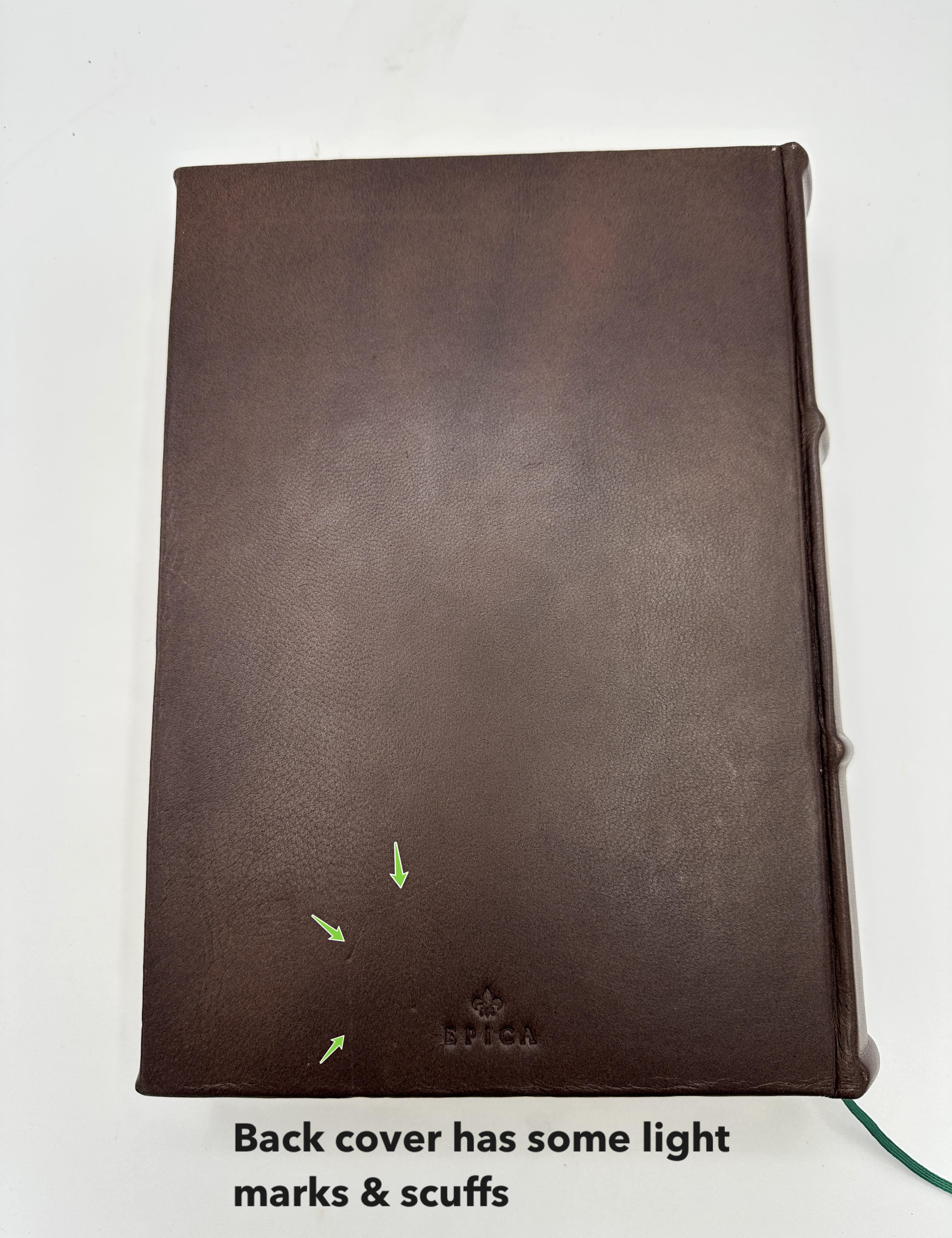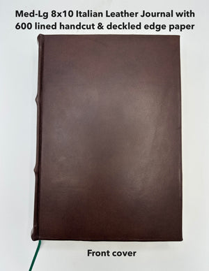 Extra Thick Italian Leather Journal with Classic Epica styling features our Classic brown or black leather covers - NOW in 2 sizes! Beautiful cream color pages feature deckled edging. Bulked up with 600 Ruled-Lined pages or Blank-Unlined pages, this extra-thick hardcover journal is incredibly aesthetic visually – the result of perfect proportions. This is for the Med-Lg 8x10 Classic Brown journal with 600 Lined pages . Only 1 available - see detailed photos and Save 25%!