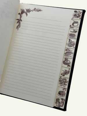 Hand-pressed panels make it incredibly easy to open while working in the kitchen, and with dividers presenting everything from antipasti to dessert, the journal offers an easy and elegant way to collect all of your top dishes.