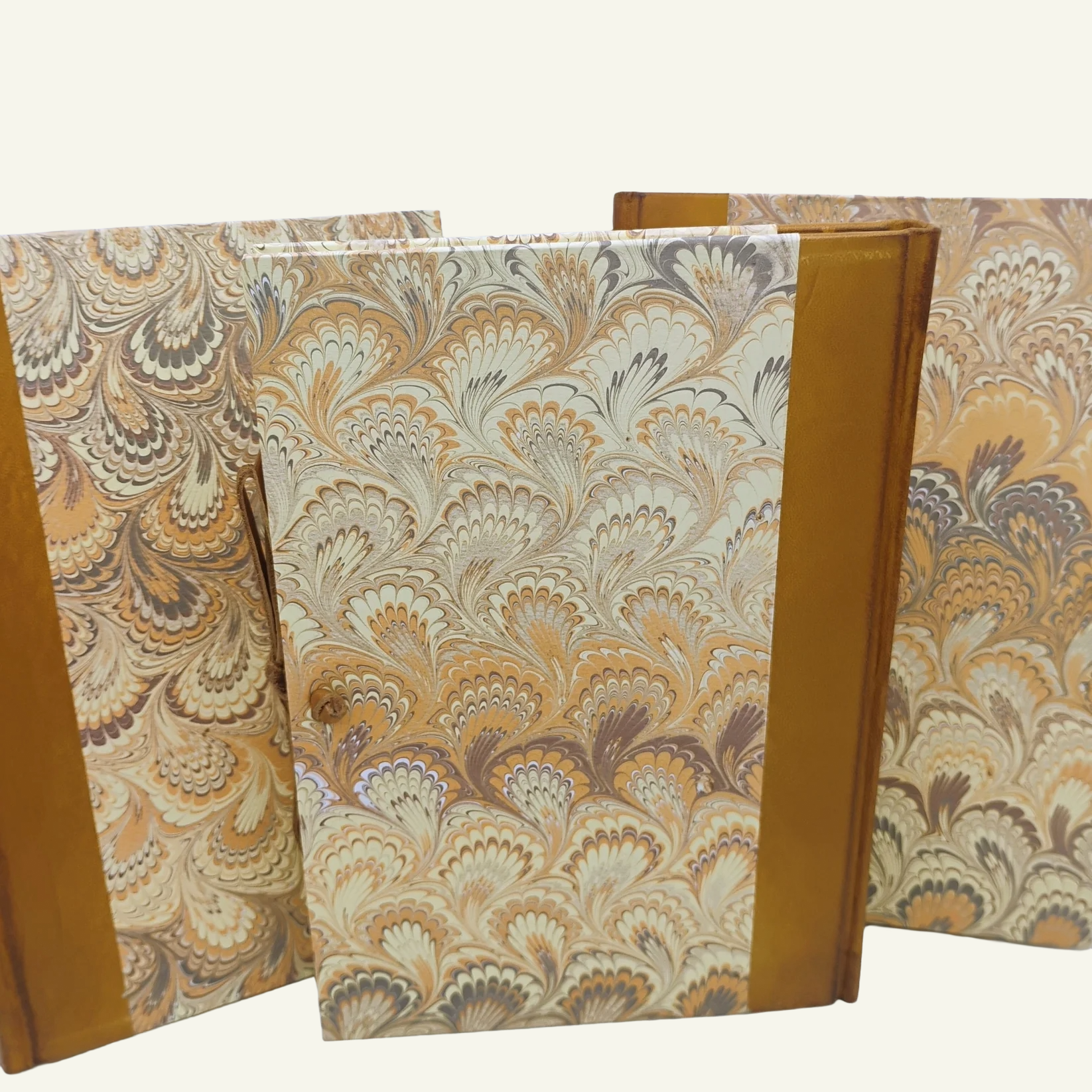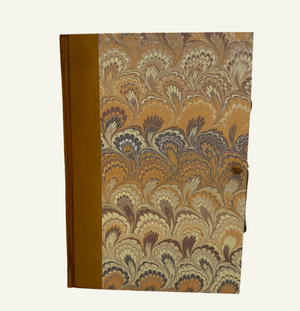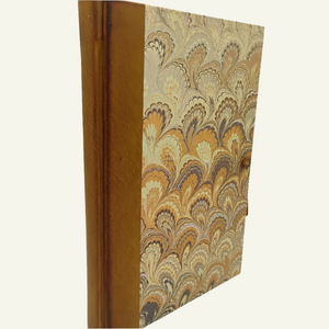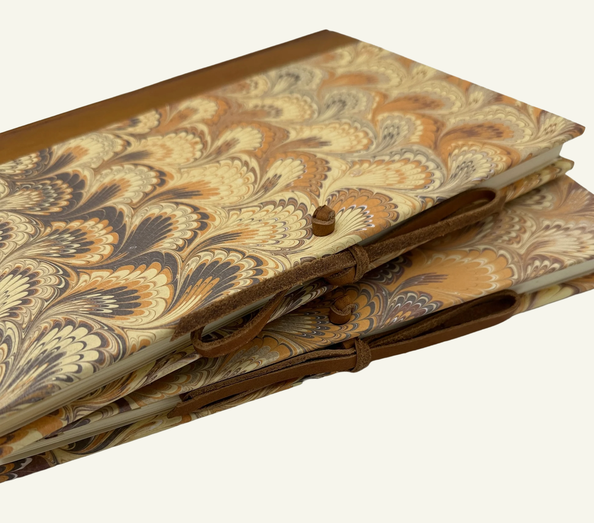 A whimsical handcrafted creations for your family's favorite recipes! This notebook features the same interior as our full leather version but with a uniquely painted paper cover - Peacock Feathers - and a leather tie. The spine features our classic distressed leather at a wonderfully affordable price.