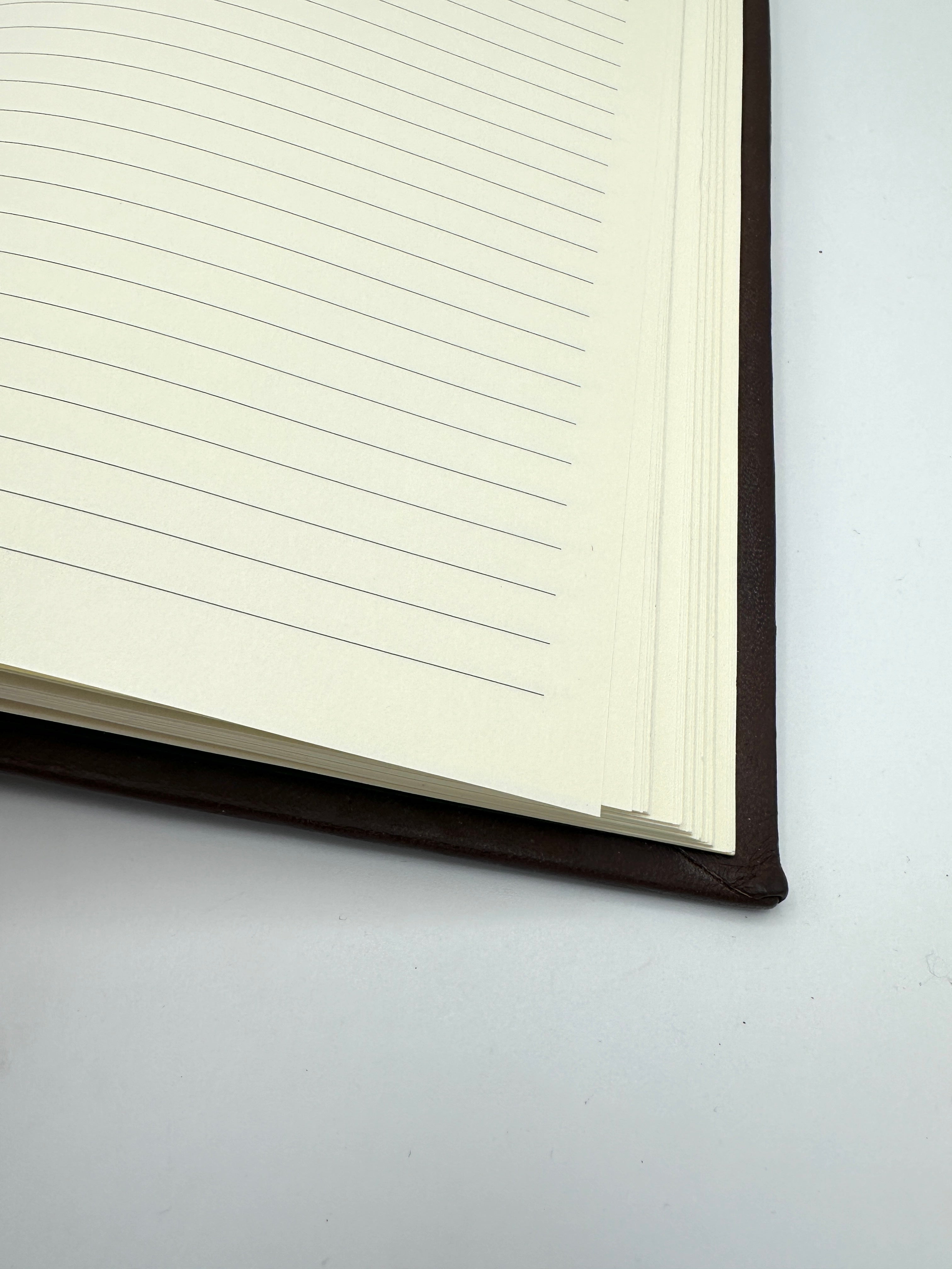 Crafted by skilled artisans in Italy, it is available in classic Black or Brown full-grain leather, and comes with ruled-lined pages—perfect for journaling, note-taking, or professional use.