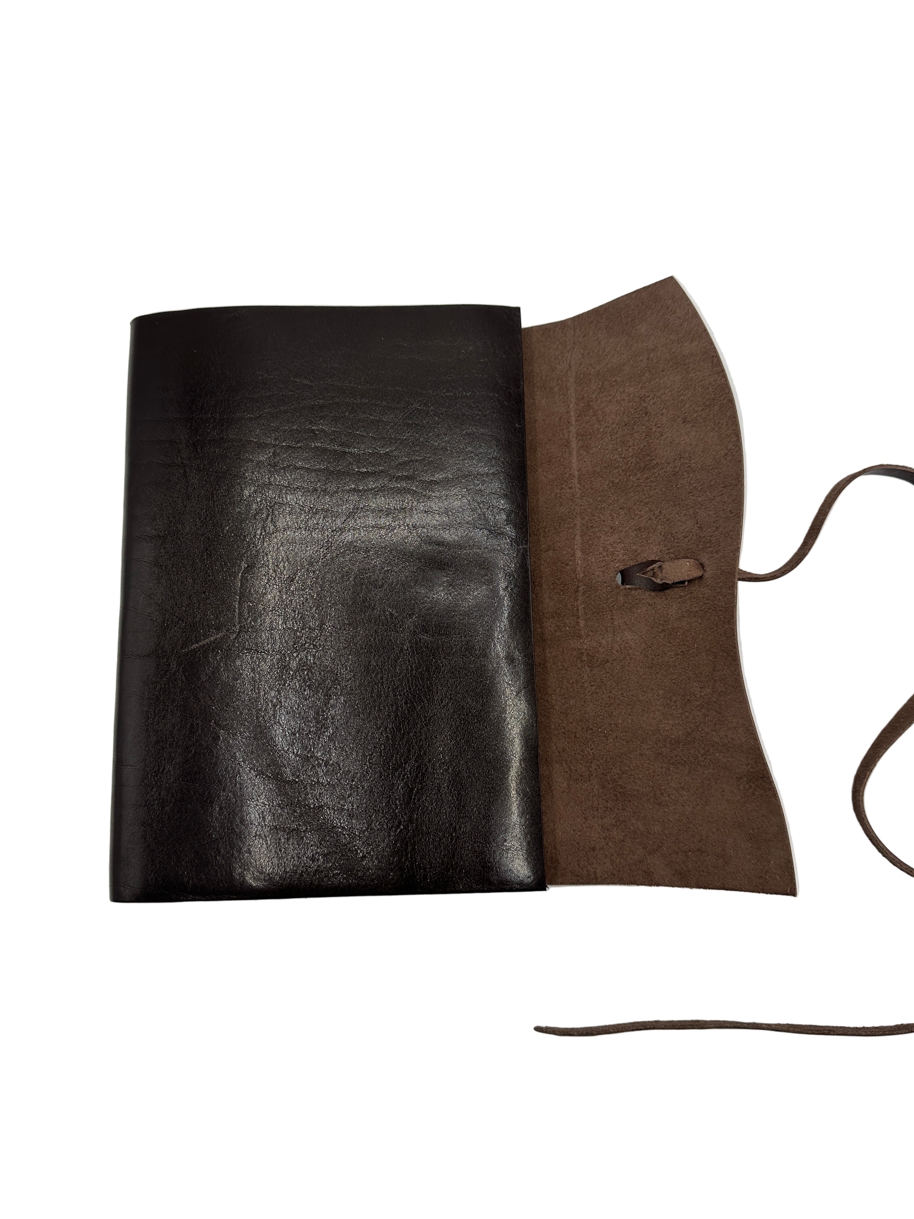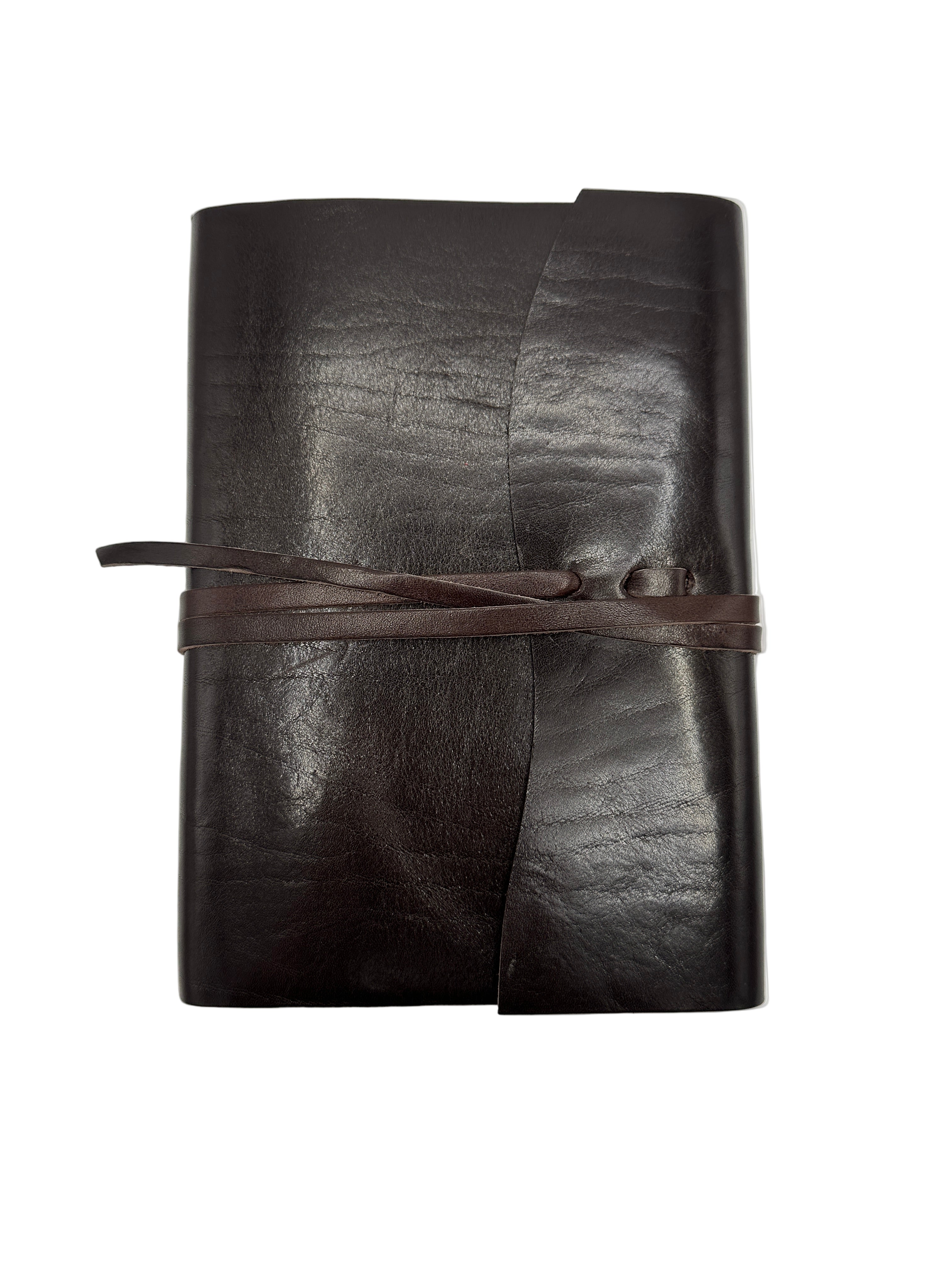 Leather wrap-style notebook journal, handmade by our artisans in Florence, Italy. Currently only available in Dark Brown, Rich Brown & Med Brown leather featuring lined writing pages.