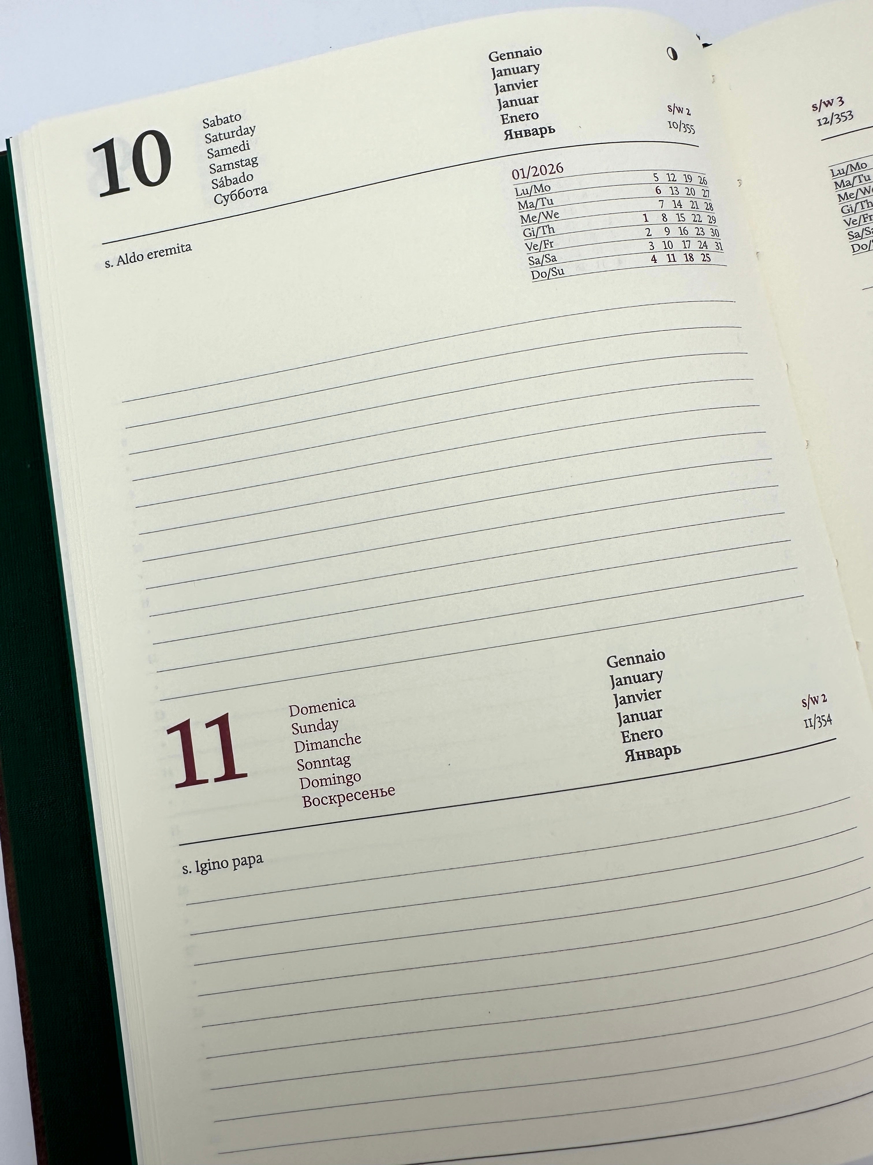 As you’d expect from Epica, our daily planners have an international flair with days of the week and months in 6 languages: English, French, German, Spanish, Russian, and, of course, Italian.