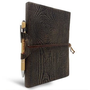 Your field notes journal from Epica features a suede rustic woodgrain leather pattern. Italian handmade leather features a clever leather strap closure and includes a pen holder for making it a perfect notebook for field notes.
